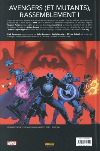 Suite aux événements survenus lors de la saga Avengers vs X-Men, Captain America crée une nouvelle équipe associant humains et mutants. Il souhaite ainsi prouver que les X-Men et les Avengers peuvent s'unir et collaborer au sein d'une même formation. Havok, le chef des Uncanny Avengers, est épaulé par Wolverine, Malicia, Thor, Captain America et la Sorcière Rouge. Découvrez ici leurs premiers combats face à Crâne Rouge et aux Jumeaux Apocalypse ! Réédition en grand format de la série Uncanny Avengers, titre phare de la période Marvel NOW ! Elle est scénarisée par Rick Remender (Axis, Black Science, Venom).
