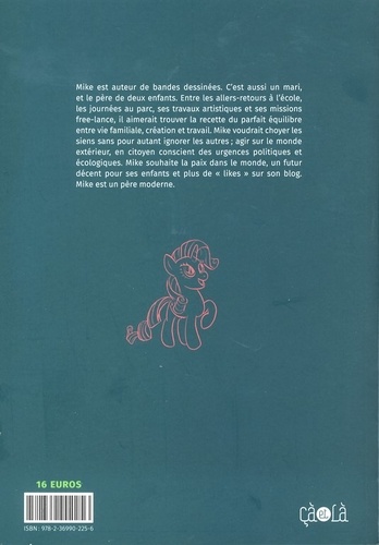 Mike est auteur de bandes dessinées. C'est aussi un mari, et le père de deux enfants. Entre les allers-retours à l'école, les journées au parc, ses travaux artistiques et ses missions free-lance, il aimerait trouver la recette du parfait équilibre entre vie familiale, création et travail. Mike voudrait choyer les siens sans pour autant ignorer les autres ; agir sur le monde extérieur, en citoyen conscient des urgences politiques et écologiques. Mike souhaite la paix dans le monde, un futur décent pour ses enfants et plus de "likes" sur son blog. Mike est un père moderne.