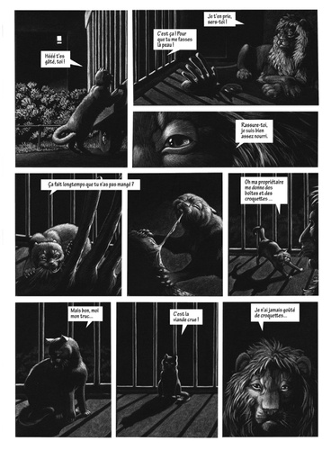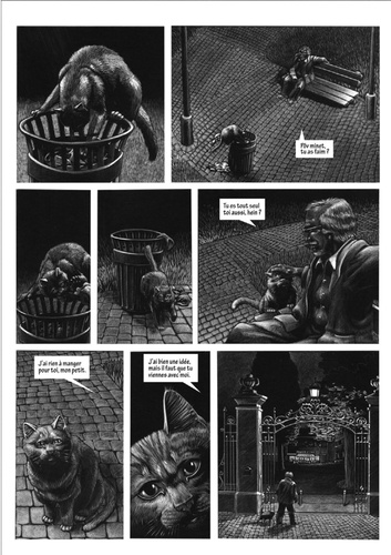 Un chat ordinaire, un peu gras, s'échappe la nuit pour chercher son menu préféré : de la viande. Il déteste les croquettes, qui sont son ordinaire à la maison. Il est prêt à tout pour assouvir son appétit. Cela l'entraîne dans des aventures étonnantes, absurdes, tragicomiques et totalement insoupçonnées de sa propriétaire.