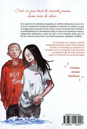 En racontant une histoire d'amitié intergénérationnelle, Ocean Rush s'impose comme un hommage au septième art. Véritable ovni, ce manga de John Tarachine ne manquera pas de vous émouvoir grâce à l'humanité de ses personnages. A la surprise de nombreux étudiants, le célèbre influenceur Sora s'est inscrit à l'université. Ce dernier, habitué à s'exprimer en public, n'a pas sa langue dans sa poche. Et lors d'une courte rencontre avec Umiko, il va profondément la chambouler. Déjà en proie à de nombreux doutes, l'apprentie réalisatrice a bien du mal à s'en remettre. Mais avec la fin du trimestre qui arrive, il lui faudra pourtant redoubler d'efforts...