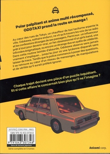 Au coeur des rues de Tokyo, un chauffeur de taxi taciturne arpente la ville. Odokawa, solitaire endurci, ne vit qu'à travers les voix de sa radio et les confessions étranges de ses passagers. Parmi eux : un influenceur prêt à tout pour devenir viral, un fan obsessionnel d'un girls band, une infirmière énigmatique, ou encore un étrange duo en quête de célébrité. Dans cette routine teintée d'absurde, Odokawa observe sans jamais vraiment s'impliquer... jusqu'au jour où une lycéenne disparaît sans laisser de trace. Tandis que la police commence à poser des questions, il se retrouve au coeur d'un réseau de mensonges, de manipulations et de vérités qu'il aurait préféré ignorer. Chaque trajet devient une pièce d'un puzzle inquiétant. Et si cette affaire le concernait bien plus qu'il ne l'imagine ?