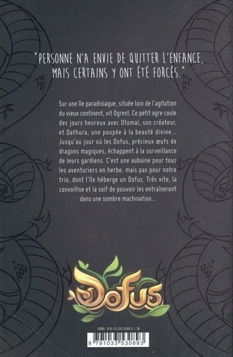 "Personne n'a envie de quitter l'enfance, mais certains y ont été forcés." Sur une île paradisiaque, située loin de l'agitation du vieux continent, vit Ogrest. Ce petit ogre coule des jours heureux avec Otomaï, son créateur, et Dathura, une poupée à la beauté divine... Jusqu'au jour où les Dofus, précieux oeufs de dragons magiques, échappent à la surveillance de leurs gardiens. C'est une aubaine pour tous les aventuriers en herbe, mais pas pour notre trio, dont l'île héberge un Dofus. Très vite, la convoitise et la soif de pouvoir les entraîneront dans une sombre machination...
