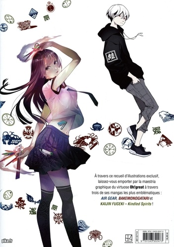 A travers ce recueil d'illustrations exclusif, laissez-vous emporter par la maestria graphique du virtuose Oh ! great à travers trois de ses mangas les plus emblématiques : "Air Gear", "Bakemonogatari" et "Kaijin Fugeki - Kindled Spirits" !