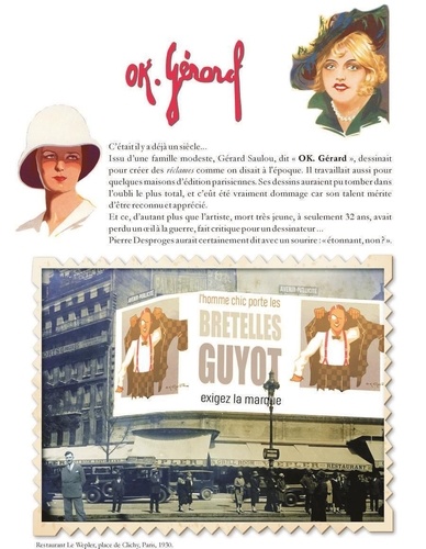 C'était il y a déjà un siècle... Issu d'une famille modeste, Gérard Saulou, dit "OK. Gérard", dessinait pour créer des réclames comme on disait à l'époque. Il travaillait aussi pour quelques maisons d'édition parisiennes. Ses dessins auraient pu tomber dans l'oubli le plus total, et t'eût été vraiment dommage car son talent mérite d'être reconnu et apprécié. Et ce, d'autant plus que l'artiste, mort très jeune, à seulement 32 ans, avait perdu un oeil à la guerre, fait critique pour un dessinateur... Pierre Desproges aurait certainement dit avec un sourire : "étonnant, non ? ".