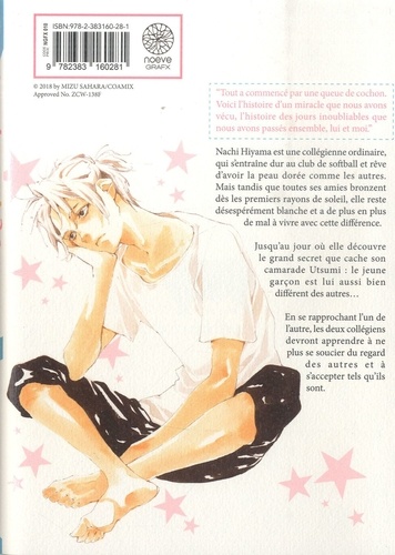 "Tout a commencé par une queue de cochon. Voici l'histoire d'un miracle que nous avons vécu, l'histoire des jours inoubliables que nous avons passés ensemble, lui et moi." Nachi Hiyama est une collégienne ordinaire, qui s'entraîne dur au club de softball et rêve d'avoir la peau dorée comme les autres. Mais tandis que toutes ses amies bronzent dès les premiers rayons de soleil, elle reste désespérément blanche et a de plus en plus de mal à vivre avec cette différence. Jusqu'au jour où elle découvre le grand secret que cache son camarade Utsumi : le jeune garçon est lui aussi bien différent des autres... En se rapprochant l'un de l'autre, les deux collégiens devront apprendre à ne plus se soucier du regard des autres et à s'accepter tels qu'ils sont.