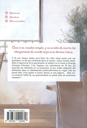 Sans m'en rendre compte, j'ai arrêté de suivre le changements du monde et je suis devenu vieux... A 39 ans, Nozue réalise qu'a force de s'être laissé porter par son quotidien, il a fini par s'enfermer dans sa routine : métro, boulot, dodo. Mais à l'approche de la quarantaine, le salarié n'a ni l'envie ni l'énergie d'essayer d'évoluer. C'est Togawa, son subordonné de 29 ans, qui bouscule ses habitudes en lui proposant un jour d'aller grignoter des pâtisseries dans un établissement particulièrement en vogue chez les jeunes filles. D'un goûter à l'autre, Nozue se sent rajeunir... Mais est-ce vraiment l'effet de ces gourmandises ou plutôt celui de sentiments naissants ?