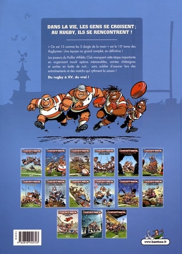 "On est 15 comme les 5 doigts de la main" . L'équipe des Rugbymen revient au grand complet ! Pour marquer cette étape importante, BeKa et Poupard retournent aux sources de la série : un album 100% gags alternant des soirées châtaigne, des matchs à rebondissements, des apéros mémorables, des entraînements physiques, des sorties en boîte... et même l'intervention d'une strip-teaseuse ! Du rugby à XV, du vrai !