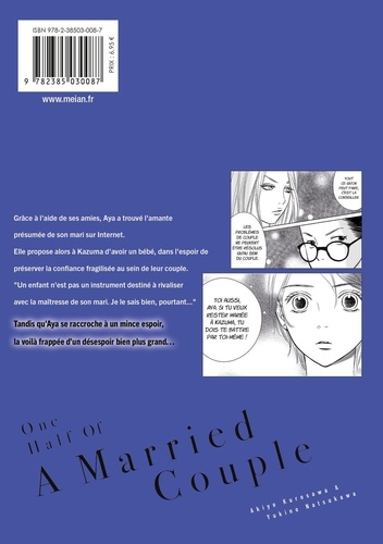 " Tout ce qu'on peut faire pour elle, c'est la conseiller. Les problèmes de couple ne peuvent être résolus qu'au sein du couple. " " Plus j'essaie de connaître la vérité, plus mon coeur est blessé. " Grâce à l'aide de ses amies, Aya a trouvé l'amante présumée de son mari sur Internet. Elle propose alors à Kazuma d'avoir un bébé, dans l'espoir de préserver la confiance fragilisée au sein de leur couple. " Un enfant n'est pas un instrument destiné à rivaliser avec la maîtresse de son mari. Je le sais bien, pourtant... ". Tandis qu'Aya se raccroche à un mince espoir, la voilà frappée d'un désespoir bien plus grand...