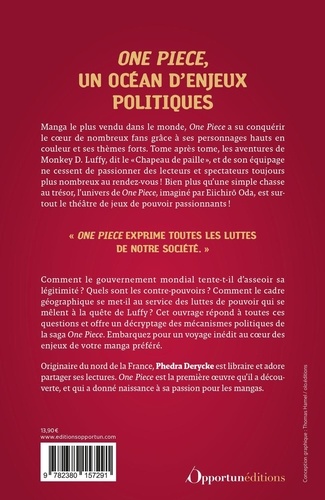 Découvrez votre animé préféré comme vous ne l'avez jamais vu ! One Piece est LE manga qui connaît un succès retentissant depuis sa création en 1997. Les aventures de Monkey F. Luffy, jeune garçon accompagné de son équipage de " Chapeau de paille " pour devenir le Roi des pirates, ne cesse de passionner les lecteurs et spectateurs. Mais connaissez-vous vraiment les messages qui sont véhiculés dans cette saga ? Quels sont les mécanismes politiques de One Piece ? En quoi la géographie de l'univers de la saga permet-elle d'asseoir la légitimité du pouvoir ? Rapahaël Derycke décrypte pour vous l'univers de One Piece et de ses personnages pour vous faire (re) découvrir l'anime comme vous ne l'avez jamais vu !