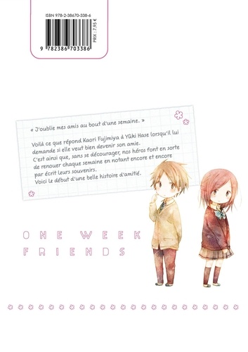 J'oublie mes amis au bout d'une semaine. Voilà ce que répond Kaori Fujimiya à Yûki Hase lorsqu'il lui demande si elle veut bien devenir son amie. C'est ainsi que, sans se décourager, nos héros font en sorte de renouer chaque semaine en notant encore est encore par écrit leurs souvenirs. Voici le début d'une belle histoire d'amitié.