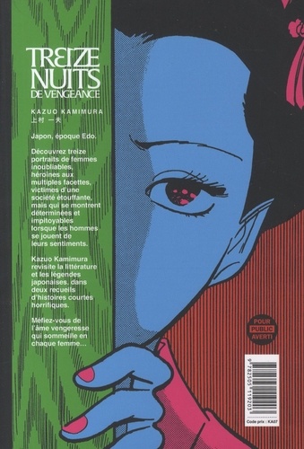 Méfiez-vous de l'âme vengeresse qui sommeille en chaque femme ! A travers des récits prenant place à l'époque d'Edo, le maître reprend le folklore japonais pour parler d'amour, de désirs charnels, de jalousie et de haine. Treize histoires horrifiques où les hommes sont punis pour avoir susciter la rancoeur du coeur des femmes. Découvrez, dans une édition en deux volumes, ces treize histoires courtes inédites de Kamimura.