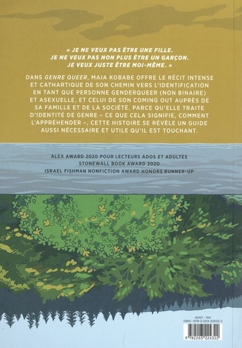 Dans Genre Queer, Maia Kobabe offre le récit intense et cathartique de son chemin vers l'identification en tant que personne genderqueer (ou non binaire, c'est-à-dire qui déroge aux normes de genre et de sexualité) et asexuelle, et celui de son coming out auprès de sa famille et de la société. Parce qu'elle traite d'identité de genre - ce que cela signifie, comment l'appréhender -, cette histoire se révèle un guide aussi nécessaire et utile qu'il est touchant.