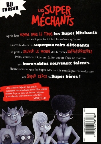 Le Grand Méchant Loup en a assez. Tout le monde a peur de lui. Alors il décide de fonder le Club des Super Gentils. Les premiers membres ? Un requin, un serpent et un piranha... Mais ils vont tout faire pour se montrer adorables, c'est promis ! De retour dans le présent, sur leur planète infestée de dangereux extraterrestres, un phénomène étrange frappe les Super Méchants : les voilà affublés de Super Pouvoirs ! Mais aucun d'eux ne les maîtrise vraiment... Se transformer en grille-pain, foncer dans les murs ou se dénuder en public, ce n'est pas tellement ce qu'on attend de Super Héros. Heureusement, les Super MéchantEs leur réservent un entraînement en béton !