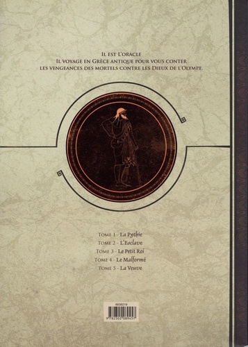 Tome 1, La Pythie ; Tome 2, L'esclave ; Tome 3, Le petit roi ; Tome 4, Le malformé ; Tome 5, La veuv