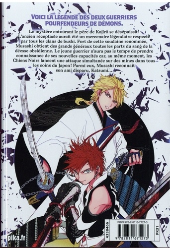 Le mystère entourant le père de Kojirô se désépaissit ! L'ancien réceptacle aurait été un mercenaire légendaire respecté par tous les clans de bushi. Fort de cette soudaine renommée, Musashi obtient des grands généraux toutes les parts du sang de la déesse obsidienne. Le jeune guerrier n'aura pas le temps de prendre connaissance de ses nouvelles capacités car, au même moment, les Chiens Noirs lancent une attaque simultanée sur des mines dans tous les coins du Japon ! Parmi eux, Musashi reconnaît son ami disparu, Katsumi...