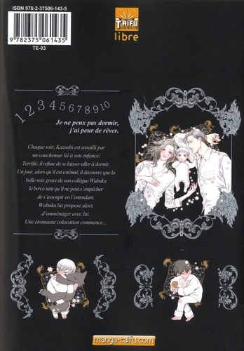 Je ne peux pas dormir, j'ai peur de rêver. Chaque soir, Kazushi est assailli par un cauchemar lié à son enfance. Terrifié, il refuse de se laisser aller dormir. Un jour, alors qu'il est exténué, il découvre que la belle mis grave de son collègue Wabuka le berce tant qu'il ne peut s'empêcher de s'assoupir en l'entendant Wabuka lui propose alors d'emménager avec lui. Une étonnante colocation commence...