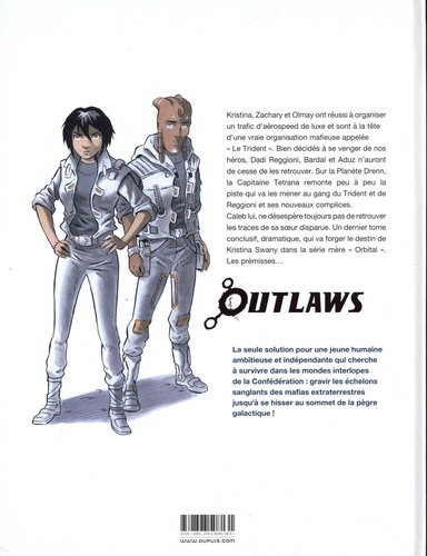 Kristina, Zachary et Olmay ont réussi à organiser un trafic d'aérospeed de luxe et sont à la tête d'une vraie organisation mafieuse appelée "Le Trident". Bien décidés à se venger de nos héros, Dadi Reggioni, Bardal et Aduz n'auront de cesse de les retrouver. Sur la Planète Drenn, la Capitaine Tetrana remonte peu à peu la piste qui va les mener au gang du Trident et de Reggioni et ses nouveaux complices. Caleb lui, ne désespère toujours pas de retrouver les traces de sa soeur disparue. Un dernier tome conclusif, dramatique, qui va forger le destin de Kristina Swany dans la série mère "Orbital". Les prémisses... La seule solution pour une jeune humaine ambitieuse et indépendante qui cherche à survivre dans les mondes interlopes de la Confédération : gravir les échelons sanglants des mafias extraterrestres jusqu'à se hisser au sommet de la pègre galactique !
