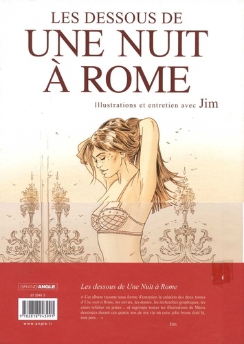 Les dessous de Une Nuit à Rome. "Cet album raconte sous forme d'entretien la création des deux tomes d'Une nuit à Rome, les envies, les doutes, les recherches graphiques, les cases refaites ou jetées... et regroupe toutes les illustrations de Marie dessinées durant ces quatre ans de ma vie où cette jolie brune était là, tout près..." Jim