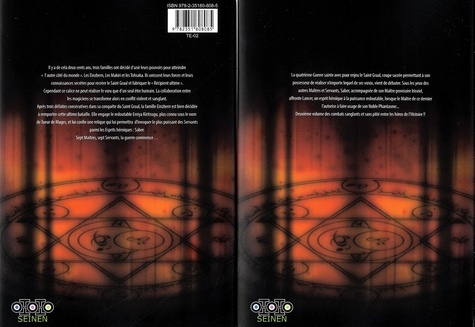 Tome 1 : Il y a de cela deux cent ans, trois familles ont décidé d'unir leurs pouvoirs pour atteindre "l'autre côté du monde". Les Einzbern, les Makiris et les Tohsaka. Ils unissent leurs forces et leurs connaissances secrètes pour recréer le Saint Graal et fabriquer le "Récipient ultime". Cependant ce calice ne peut réaliser le voeu que d'un seul être humain. La collaboration entre les magiciens se transforme alors en conflit violent et sanglant. Après trois défaites consécutives dans sa conquête du Saint Graal, la famille Einzbern est bien décidée à rempoter cette ultime bataille. Elle engage le redoutable Emiya Kiritsugu , plus connu sous le nom de Tueur de Mages, et lui confère une relique qui lui permettra d'invoquer le plus puissant des Servants parmi les Esprits héroïques : Saber. Sept Maîtres, sept Servants, la guerre commence... Tome 2 : La quatrième Guerre sainte avec pour enjeu le Saint Graal, coupe sacrée permettant à son possesseur de réaliser n'importe lequel de ses voeux, vient de débuter. Sous les yeux des autres Maîtres et Servants, Saber, accompagnée de son Maître provisoire Irisviel, affronte Lancer, un esprit héroïque à la puissance redoutable, lorsque le Maître de ce dernier l'autorise à faire usage de son Noble Phantasme... Deuxième volume des combats sanglants et sans pitié entre les héros de l'Histoire !!