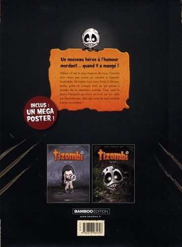 Un nouveau héros à l'humour mordant... quand il a mangé ! Même s'il est le plus mignon de tous, Tizombi n'en reste pas moins un zombie à l'appétit insatiable. Véritable trou sans fond, il dévore, avale, gobe et croque tout ce qui passe à portée de sa dentition acérée. Tout, sauf la jeune Margotik qui écrit un livre sur lui : elle est fascinée par celui qui reste le seul zombie à être né zombie !