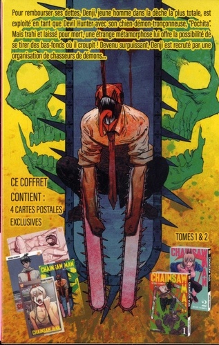Pour rembourser ses dettes, Denji, jeune homme dans la dèche la plus totale, est Mais trahi et laissé pour mort, une étrange métamorphose lui offre la possibilité de se tirer des bas-fonds où il croupit ! Devenu surpuissant, Denji est recruté par une organisation de chasseurs de démons...