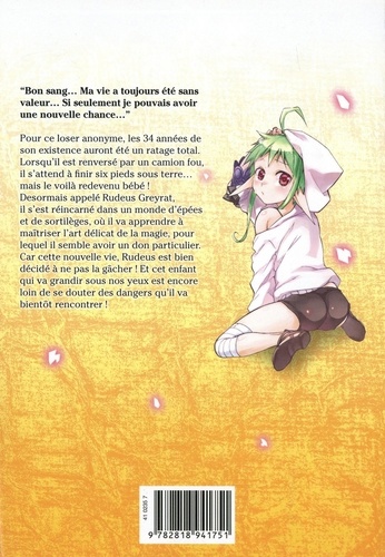 Pour ce loser anonyme, les 34 années de son existence auront été un ratage total. Lorsqu'il est renversé par un camion fou, il s'attend à finir six pieds sous terre... mais le voilà redevenu bébé ! Desormais appelé Rudeus Greyrat, il s'est réincarné dans un monde d'épées et de sortilèges, où il va apprendre à maîtriser l'art délicat de la magie, pour lequel il semble avoir un don particulier. Car cette nouvelle vie, Rudeus est bien décidé à ne pas la gâcher ! Et cet enfant qui va grandir sous nos yeux est encore loin de se douter des dangers qu'il va bientôt rencontrer !