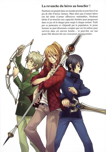 La revanche du héros au bouclier ! Naofumi est projeté dans un monde proche en tout lieu d'un jeu de rôle d'heroic fantasy. Mais alors que d'autres héros ont été dotés d'armes offensives redoutables, Naofumi hérite d'un bouclier aux capacités limitées pour progresser dans ce jeu où le danger peut surgir à chaque instant. Trahi par sa partenaire et vilipendé par la population, le jeune homme ne peut désormais compter que sur lui-même pour survivre dans cet univers hostile... et peut-être sur une jeune fille désoeuvrée aux ressources insoupçonnées.