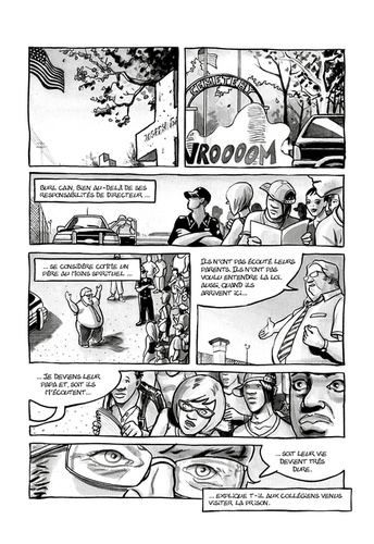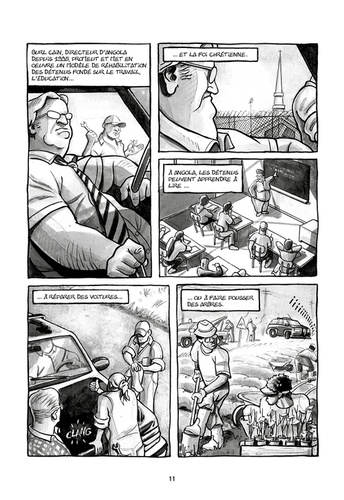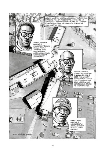 Militants membres des Black Panthers, Robert Hillary King, Albert Woodfox et Herman Wallace, "les Trois d'Angola", se sont engagés pour défendre les droits et la dignité des prisonniers au sein même de leur centre de détention dit d'Angola, en Louisiane où ils ont été placés à l'isolement, dès 1972 après avoir été injustement accusés du meurtre d'un gardien du pénitencier. Le moins "malchanceux" des trois, Robert King a été libéré en 2001. Herman Wallace aura, lui, peu profité de sa liberté puisqu'il est décédé le 4 octobre 2013, trois jours à peine après sa remise en liberté. Quant à Albert Woodfox, il reste encore détenu à l'isolement... Nourri entre autres par le témoignage direct de Robert King (que les auteurs ont rencontré), Panthers in the hole reprend l'histoire de ces hommes pour en faire un récit poignant sur la ségrégation sociale et raciale ainsi que sur l'inhumanité des conditions d'incarcération imposées à nombre de détenus, aux Etats-Unis.