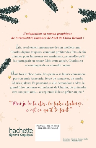 L'adaptation en roman graphique de l'irrésistible romance de Noël de Clara Héraut. " Moi je te le dis, le fake dating, c'est ce qu'il te faut. " Iris, secrètement amoureuse de son meilleur ami Charles depuis toujours, comptait profiter des fêtes de fin d'année pour lui avouer ses sentiments, persuadée qu'il les partageait en retour. Mais cette année, Charles est accompagné de sa nouvelle copine. Une fois le choc passé, Iris peine à se laisser convaincre par son amie Anastasia, férue de romances, de rendre Charles jaloux. Et pourtant, si elle demandait à Alex, le grand frère taciturne et renfermé de Charles, de prétendre être son petit ami... accepterait-il de se prêter au jeu ?