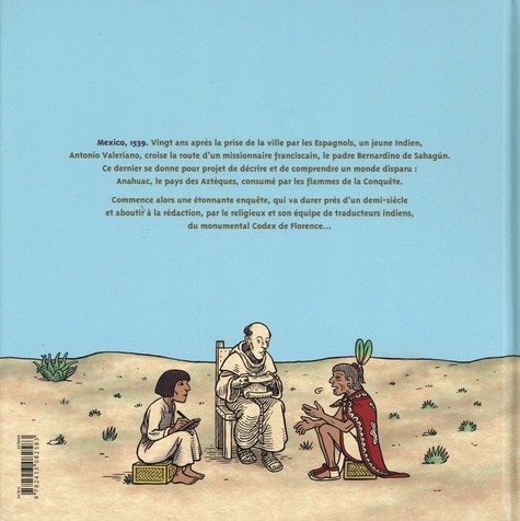 Exceptionnel par sa rigueur scientifique et la qualité de sa narration graphique, cet ouvrage met en lumière la préservation, sous l'impulsion d'un seul homme, de la mémoire du peuple aztèque promise à l'anéantissement. Au XVIe siècle, lors de son arrivée au Mexique, le prêtre franciscain Bernardino de Sahagun déplore la destruction systématique par les conquistadores de la culture autochtone. Il se lance dans la rédaction d'un recueil monumental, transcription de la mémoire aztèque. Un jeune Indien, Antonio Valeriano, né après la Conquête, l'aide dans sa tâche et découvre, chemin faisant, sa culture d'origine...