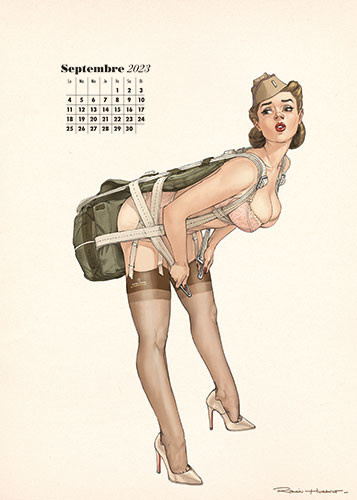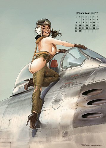 LAATSTE 3 EXEMPLAREN A3 Formaat Kalender met Pin-up door de tekenaar van Angel Wings Romain Hugault. Franstalig onmiddellijk leverbaar