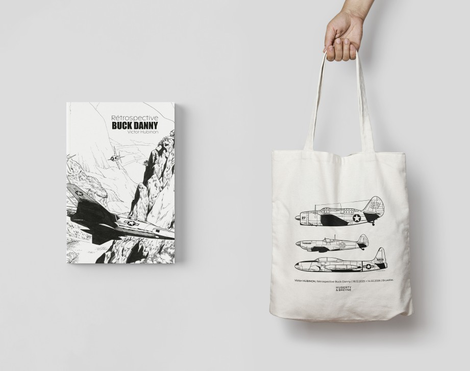 A l'occasion de la rétrospective Buck Danny de Victor Hubinon les éditions Hubert & Breyne vous propose un catalogue d'exposition avec Tote bag