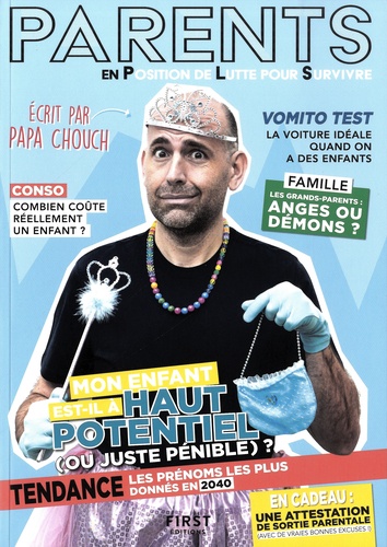 Le magazine 100 % déculpabilisant que les parents attendaient tous par Papa Chouch ! Plongez au coeur de la parentalité, la vraie, en testant de (fausses) astuces pour endormir votre enfant en moins de 5 minutes. Suivez notre enquête choc sur les grands-parents : anges ou démons ? Consultez la rubrique Vomito Test pour choisir la voiture idéale. Bref, venez vous amuser avec un magazine déculpabilisant qui regorge de quiz, de tutos rigolos mais aussi de pubs de fournitures scolaires au format improbable qui rendent légèrement anxieux la veille de la rentrée ! Papa Chouch a même pensé aux plus jeunes lecteurs et concocté des jeux spéciaux juste pour eux (avec des choses introuvables dedans, ne le remerciez pas). En exclusivité pour les lecteurs : une interview de Maman Chouch ! En cadeau, une attestation de sortie parentale quand vous avez vraiment besoin de souffler.