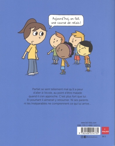 Aujourd'hui, la professeur de sport propose de travailler la course de relai par 4. Pas de chance pour Parfait qui n'est déjà pas très fort en sport, il se retrouve seul avec les 3Z'A. Angoissé, il fait perdre son équipe et la professeur ne le soutient pas. Parfait se sent nul, en plus la course va être notée et impossible pour lui d'assumer une mauvaise note. Progressivement l'angoisse monte et Parfait est de plus en plus inquiet avant d'arriver à l'école, jusqu'à ce que son corps témoigne de la pression qu'il se met. Après discussion avec ses parents, les Inséparables mettent tout en place pour que Parfait retrouve sa classe sans pression.