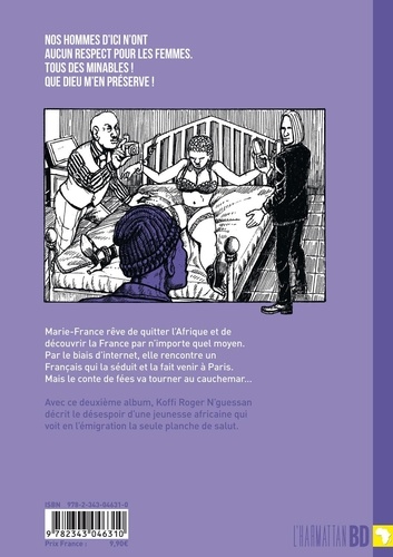 Marie-France rêve de quitter l'Afrique et de découvrir la France par n'importe quel moyen. Par le biais d'internet, elle rencontre un Français qui la séduit et la fait venir à Paris. Mais le conte de fées va tourner au cauchemar... Avec ce deuxième album, Koffi Roger N'guessa décrit le désespoir d'une jeunesse africaine qui voit en l'émigration la seule planche de salut.