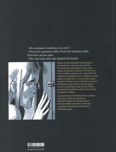 Parker, le plus implacable des braqueurs professionnels, vient une nouvelle fois de réussir un coup fumant : le casse d'une banque de province, effectué en beauté avec trois complices expérimentés. Quand l'un des membres de l'équipe décide de trahir ses partenaires et de filer avec le butin, Parker passe aussitôt à l'action. Commence alors une chasse à l'homme à cent à l'heure tout au long de la côte est des Etats-Unis. Et pour Parker, pas question de lâcher sa proie avant d'avoir récupéré les dollars... Le grand retour de Parker, héros mythique créé par le maître du roman noir Donald Westlake alias Richard Stark, dans un thriller sous haute tension qui vous tient en haleine de la première à la dernière page.