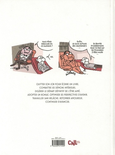 Partir un jour, sans retour... Telle est la décision de notre héros à lunettes, qui en a assez de son travail sans joie. Car ce qu'il désire au fond, lui, c'est écrire, mais pas n'importe quoi : "une Bible incandescente, un brûlot sans concession appelé à redéfinir les contours, non seulement de la littérature, mais de la pensée même ! " Mais la pente des lettres est rude, et les ennuis guettent : l'achat inopiné d'un bonsaï et d'huiles essentielles n'empêche ni le départ de l'être aimée ni les relations compliquées avec la psychanalyse. Et puis il y a ces lieux inhospitaliers que notre personnage traverse en rêve, incarnation des échecs passés et des angoisses présentes... Sortira-t-il de l'ornière ? Réussira-t-il à passer la crise de la quarantaine tout en écrivant le Magnum opus que le XXIe siècle attend ?