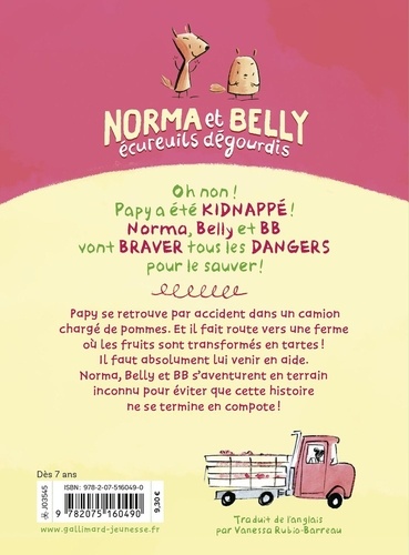 Gourmandise, aventure et solidarité : le deuxième volume d'une bande dessinée hilarante, pour les premiers lecteurs comme les plus aguerris. Oh non ! Papy a été kidnappé ! Il se retrouve par accident dans un camion chargé de pommes qui fait route vers une ferme où les fruits sont transformés en tartes ! Il faut absolument lui venir en aide. Norma, Belly et BB s'aventurent en terrain inconnu pour éviter que cette histoire ne se termine en compote !