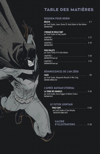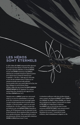Meurtri par la perte de son fils, Damian, Bruce Wayne sombre dans la dépression et lutte pour garder le contrôle sur une ville de plus en plus en proie aux dangers de toutes sortes. Criminels métamorphes, démons ancestraux et tueurs en série parcourent les rues d'une cité maudite qui a plus que jamais besoin d'un sauveur. Faisant face contre vents et marées, Batman se doit de résister et de faire honneur à une légende appelée à durer des siècles. Contient : Batman #18-20, 34 + Batman annual #2 + Detective Comics #27