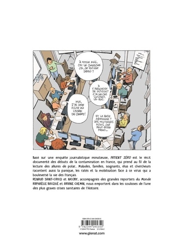 Une enquête détaillée aussi fascinante que déconcertante. Le 25 février 2020, le service de réanimation de l'hôpital la Salpêtrière, à Paris, est sous le choc : Dominique Varoteaux, 61 ans, infecté par ce nouveau virus venu de Chine, vient de mourir d'une embolie pulmonaire massive. Au ministère de la Santé, c'est le branle-bas de combat : le "cas 17" est la première victime française du Covid-19 qui, en Chine, a déjà fait 2700 morts. Ni lui ni ses proches ne reviennent pourtant d'une zone à risque, Chine ou Italie. Un peu plus tôt, un autre malade a lui aussi été testé positif. Les deux hommes ne s'étaient jamais croisés mais ils habitent tous deux dans l'Oise. Deux cas semblables dans la même journée, à quelques kilomètres de distance... En quelques heures, ce département du nord de Paris devient le premier cluster français du coronavirus et ses habitants des pestiférés. Alors que tous les médias français se ruent dans l'Oise, les épidémiologistes et les services du ministère de la Santé se lancent dans un défi quasi impossible : remonter la piste du patient zéro, ce porteur du virus qui, sans le savoir, a introduit la Covid-19 dans l'Oise et contaminé la France. Un vrai travail de détective. Basé sur une enquête journalistique minutieuse, Patient zéro est le récit documenté des débuts de la contamination en France, qui prend au fil de la lecture des allures de polar... Malades, familles, soignants, élus, chercheurs, racontent aussi la panique, les ratés et la mobilisation face à ce virus qui a bouleversé la vie des Français. Avec habilité et dans un langage dessiné parfaitement maîtrisé, Renaud Saint-Cricq et Nicoby, accompagnés des grandes reporters du Monde Raphaëlle Bacqué et Ariane Chemin, nous emportent dans les coulisses de l'une des plus graves crises sanitaires de l'histoire.