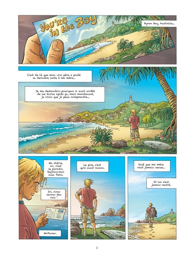 Second et dernier tome de Patxi Babel, la nouvelle série de Pierre Boisserie et Georges Abolin, qui nous entraîne dans le monde du surf. Après être tombé par hasard sur une lettre, Patxi, jeune surfeur, apprend que son père biologique n’est pas celui qu’il croyait... Abattu par cette découverte, il décide de quitter le Sud-Ouest et sa famille afin de partir à la recherche de son véritable père, à l’autre bout du monde, en Australie. Un voyage douloureux et pourtant essentiel pour Patxi ! Dernier volet des aventures de Patxi Babel, la série qui plaira à tous les amateurs et passionnés de surf !