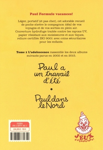 Léger, portatif (et pas cher), cet adorable recueil de poche s'avère le compagnon idéal de vos voyages et de vos sorties en plein air. Couverture hydrofuge traitée contre les rayons UV, papier résistant aux moisissures et aux tiques, reliure certifiée ISO 9001 avec coins sécuritaires pour les enfants. Tome 1, L'adolescence rassemble les deux albums suivants parus en 2002 et en 2015.