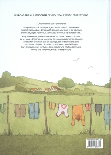 Un road trip à la rencontre des nouveaux modèles de paysans. "On devient ce que l'on mange" et chaque repas préparé et partagé nous connecte à celles et ceux qui sont responsables de la qualité de notre nourriture, de la beauté de nos paysages et pourtant ils sont si peu reconnus, respectés, si ce n'est, malmenés. En quête de sens, Marie-France Barrier est partie, caméra à l'épaule, sur les routes de France et en plein champ à la rencontre des pionniers du monde agricole, de ces audacieux éleveurs, viticulteurs, céréaliers, forestiers qui, avec autant d'humilité que de courage, ont décidé de questionner leurs pratiques, leurs certitudes, leurs apprentissages, leurs héritages pour écouter une intuition commune : celle d'une autre voie, non seulement possible mais aussi nécessaire que désirable. En apprenant à faire équipe avec l'arbre, la chauve-souris, le ver de terre et le champignon, ces nouveaux paysans explorent le champ des possibles, et nous offrent des pistes pour inventer une autre façon d'être au monde. Cet album est également le passionnant récit de la mue de Marie-France Barrier qui, à chaque rencontre, questionne son rapport à la Terre et murit son projet personnel. Réalisatrice de documentaires depuis plus de 20 ans, elle effectuera finalement un changement de vie radical en créant l'association. "Des Enfants et des Arbres", qui, à ce jour, a permis à plus de 6 000 enfants de planter 40 000 arbres chez plus de 180 agriculteurs. Lauréat du Prix Nouveauté Source de Burle 2023