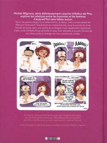 "Péchés Mignons", série délicieusement coquine d'Arthur de Pins, explore les relations entre les hommes et les femmes d'aujourd'hui sans tabou aucun. Parmi les personnages, il y a certes Arthur, le héros, mais surtout toutes les filles qui l'entourent. D'aventures en mésaventures, vous le suivrez lui et sa bande de potes dans une quête de la drague. Il est rapidement rejoint par Clara, sorte de Betty Boop gironde et sexy, bien décidée à trouver l'amant de ses rêves quitte à changer de mec comme de culotte.