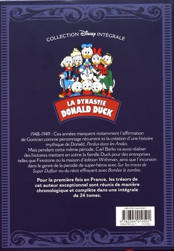 L'avant-dernier volume d'une intégrale indispensable ! Retrouvez l'intégralité de l'oeuvre de Carl Barks, l'auteur le plus réputé et le plus talentueux des aventures de Donald. Aventure, mystère et magie sont bien sûr au rendez-vous de ces histoires, mais aussi humour, amitié et cacophonie familiale ! En introduction, chaque volume propose un appareil critique de l'oeuvre de l'auteur, et chaque histoire est précédée d'une courte fiche d'identité bibliographique permettant de la replacer dans le contexte de sa première publication. Cette intégrale, prévue en 24 volumes, est idéale pour les admirateurs de Carl Barks et les collectionneurs bibliophiles, vendue à plus de 200 000 exemplaires et dont le tome 4 a eu l'honneur de recevoir le Fauve Patrimoine lors du Festival d'Angoulême 2012. Depuis le tome 19, La Dynastie Donald Duck reprend chronologiquement, depuis ses débuts, l'oeuvre de Carl Barks.