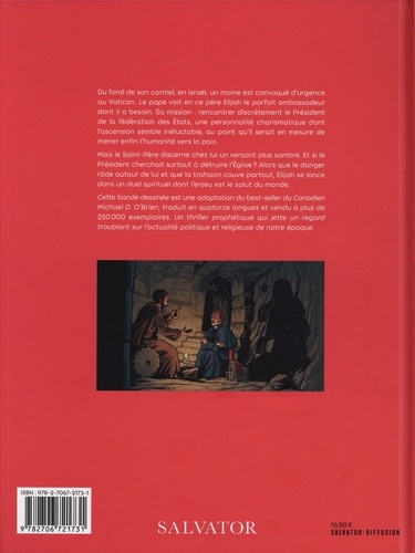 Du fond de son carmel, en Israël, un moine est convoqué d'urgence au Vatican. Le pape voit en ce père Elijah le parfait ambassadeur dont il a besoin. Sa mission : rencontrer discrètement le Président de la fédération des Etats, une personnalité charismatique dont l'ascension semble inéluctable, au point qu'il serait en mesure de mener enfin l'humanité vers la paix. Mais le Saint-Père discerne chez lui un versant plus sombre. Et si le Président cherchait surtout à détruire l'Eglise ? Alors que le danger rôde autour de lui et que la trahison couve partout, Elijah se lance dans un duel spirituel dont l'enjeu est le salut du monde. Cette bande dessinée est une adaptation du best-seller du Canadien Michael D. O'Brien, traduit en quatorze langues et vendu à plus de 250000 exemplaires. Un thriller prophétique qui jette un regard troublant sur l'actualité politique et religieuse de notre époque.