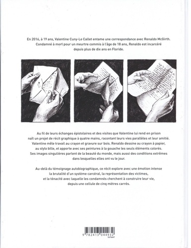 En 2016, Valentine Cuny-Le Callet entame une correspondance avec Renaldo McGirth, condamné à mort, incarcéré depuis plus de 10 ans en Floride. Au fil de leurs lettres, des images qu'ils s'échangent, des rares visites, naît le récit graphique de leurs vies parallèles. Le livre questionne avec une intense émotion la brutalité d'un système carcéral, et l'amitié qui surgit, depuis une cellule de 5m2.