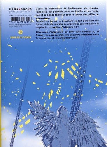 Depuis la découverte de l'enlèvement de Nanako, l'angoisse est palpable pour sa famille et ses amis. Soli et sa bande font tout pour la sauver des griffes de son ravisseur. Pendant ce temps, le brouillard se fait persistant sur Inaba, et de plus en plus de citoyens se sentent mal en le respirant... Le mystère s'éclaircira-t-il ? Découvrez l'adaptation du RPG culte Persona 4, et laissez-vous aspirer dans une aventure trépidante entre le monde réel et celui de la télévision l