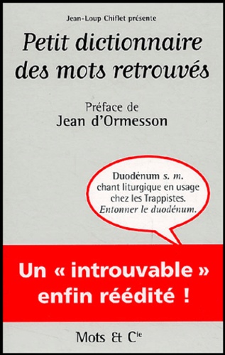 Voici un ouvrage qui comblera les amoureux des mots, les vrais, ceux qui savent qu'on peut aussi s'amuser avec la lexicologie. En 1938, quelques collaborateurs, qui souhaitèrent rester anonymes, de la Nouvelle Revue Française, dont le rédacteur en chef était alors Jean Paulhan, y publièrent un Petit dictionnaire des mots retrouvés. Faisant mine de vouloir réhabiliter certains mots scandaleusement détournés, selon eux, de leur sens premier, ils en proposaient des définitions qui jouaient sur des associations d'idées, homonymies partielles, glissements de sens, fausses ressemblances et jeux sur la phonétique, souvent appuyées par des citations -totalement fantaisistes-, d'autant plus savoureuses qu'elles étaient présentées avec le plus impertubable sérieux.