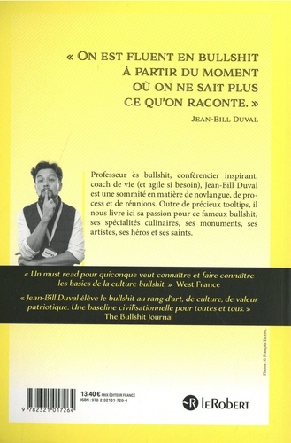 " On est fluent en bullshit à partir du moment où on ne sait plus ce qu'on raconte. " Professeur ès bullshit, conférencier inspirant, coach de vie (et agile si besoin), Jean-Bill Duval est une sommité en matière de novlangue, de process et de réunions. Outre de précieux tooltips, il nous livre ici sa passion pour ce fameux bullshit, ses spécialités culinaires, ses monuments, ses artistes, ses héros et ses saints. Car le bullshit, c'est bien plus que la novlangue et ses termes abscons. C'est cette fougue qui vous habite et vous pousse à vous impliquer dans la réunion la plus inutile qui soit. C'est un répertoire d'oeuvres plastiques, littéraires, cinématographiques, culinaires... C'est un ensemble de règles de bienséance pour briller en société : comment exécuter le geste des guillemets comme il se doit ? Comment faire une vinaigrette en mode projet ? Comment hacker la croissance de votre enfant ? Ce petit précis résume à lui seul tout l'humour de Karim Duval, l'ingénieur devenu humoriste, qui à coup de haïkus et de textes ciselés, raille par l'absurde les travers langagiers de notre époque. Une satire acerbe mais toujours affectueuse qui, par effet miroir, nous donne à réfléchir sur les valeurs d'humanisme in real life en tant que top priority. " Un must read pour quiconque veut connaître et faire connaître les basics de la culture bullshit. " West France " Jean-Bill Duval élève le bullshit au rang d'art, de culture, de valeur patriotique. Une baseline civilisationnelle pour toutes et tous. " The Bullshit Journal L'auteur Karim Duval est humoriste, comédien et auteur. Ancien cadre dans une grande entreprise, il consacre sa vie à la scène et à l'humour depuis maintenant douze ans. Karim Duval fait un triomphe partout en France et au-delà avec son spectacle Y , qui croque cette fameuse génération Y en quête de soi, de sens et de fun, et qu'il jouera une dernière fois à l'Olympia le 7 juin 2023. Vous l'avez peut-être découvert à travers ses vidéos sur les réseaux sociaux et en particulier sur LinkedIn (si, si ! ) : " Le covidisme ", " Les guerrilleros de la RSE ", " Elever son enfant en mode startup ", " La vérité sur la pénurie de masques "... et tant d'autres pastiches de bullshiters de renom, où il dépeint les absurdités de notre société et du monde du travail.